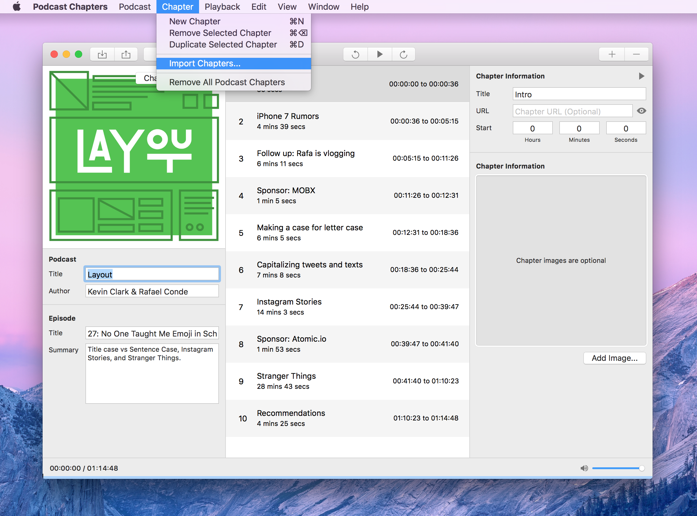 Podcast Chapters was created and developed by Thomas Pritchard from 2016 to March 2019, when he handed charge of the app over to Fredrik Björeman. I (hello!) have lent a hand with the last few releases, and I look forward to keep things going in very much the same style as before. You can read a bit more over here, if you like.